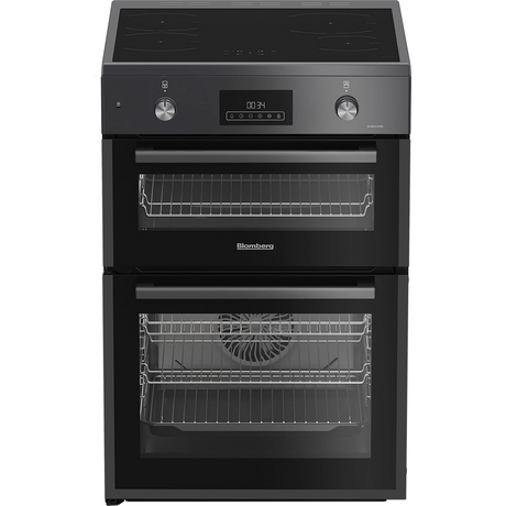 Introducing the Blomberg HIRN651N, an elegant 60cm double oven electric cooker finished in an eye-catching anthracite colour that guarantees to enhance any kitchen decor. This modern appliance features an advanced induction hob, which offers rapid heating and precise temperature control, making your cooking experience truly enjoyable and efficient, regardless of your culinary skills.